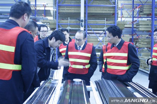 瑞雪迎春。潘董事長一行首先在公司劉董事長的陪同下,欣然參觀了公司展廳企業宣傳展區,對公司企業文化、全球布局、資質榮譽、產品體系、設計研發、售后服務及全球業績等進行了觀摩和了解。在企業文化展區前,公司劉董事長悉心為潘董事長一行詮釋公司企業文化和發展理念,得到了潘董事長的充分認可。潘董事長對江河幕墻企業文化產生了濃厚的興趣,開懷而笑中不忘將江河幕墻”向雷鋒學習,絕不讓雷鋒吃虧”的箴言發到了自己的微博上;在全球業績展區,潘董事長一行仔細觀看了江河幕墻令人矚目的全球業績:相繼中標“世界第二、中國第一高”上海中心大廈等在內的十六項國家及地區“第一高樓”項目;包攬了國內四大直轄市五大機場在內的11項機場項目,以及京津滬穗高鐵交通樞紐在內的10項火車站項目,這其中不乏國外重點項目“沙特王國最大的機場”吉達國際機場和“沙特王國最重要的火車站”吉達火車站……